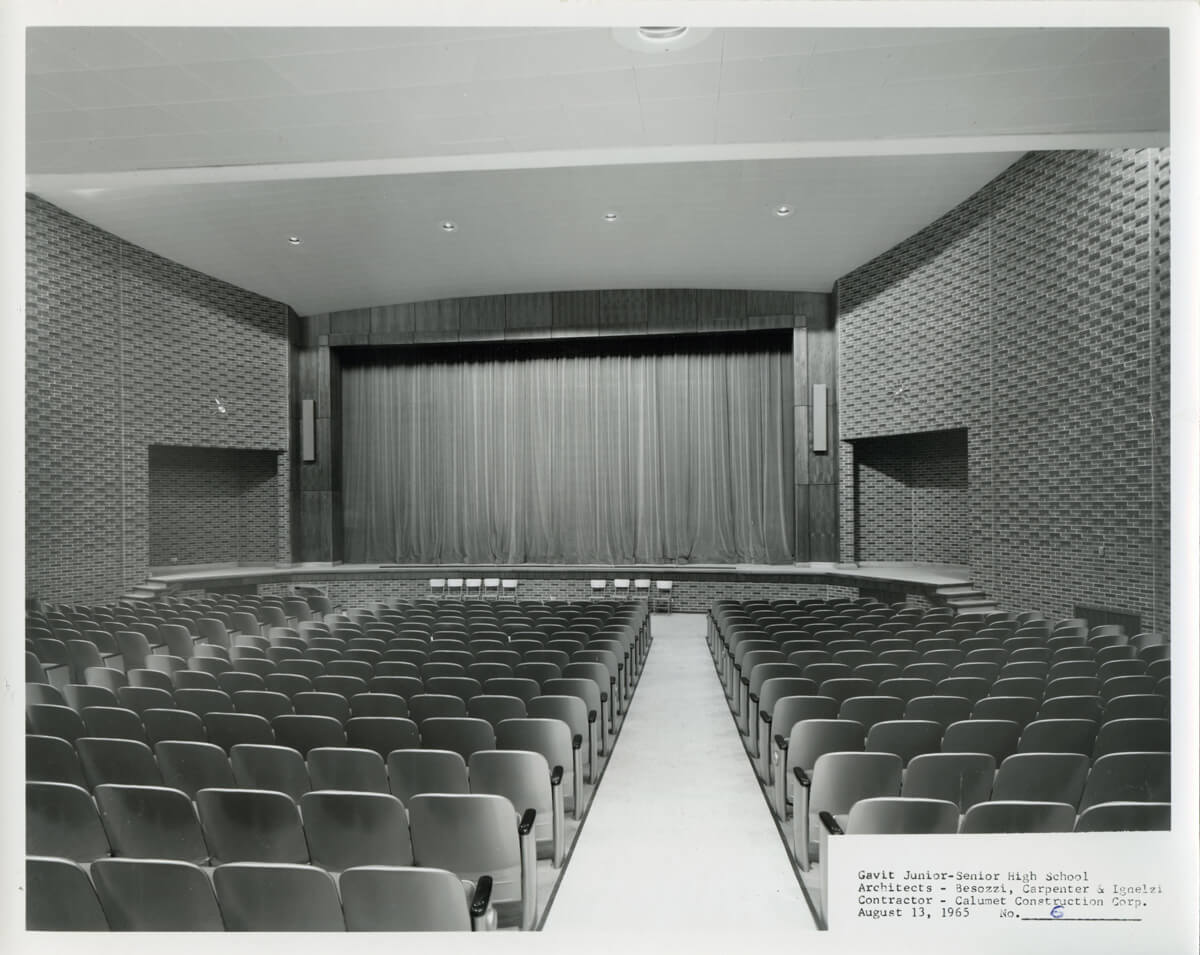 While the school began welcoming students in 1961, Gavit’s construction period was not over. A second phase of construction began in November of 1963 on three sites. This expansion included 15 classrooms on the west, an auditorium and stage facilities in the center back and shop rooms on the east. In addition, balcony basketball bleachers were added along with a football field and baseball bleachers. 1966 marked the end of this phase of Gavit’s construction.