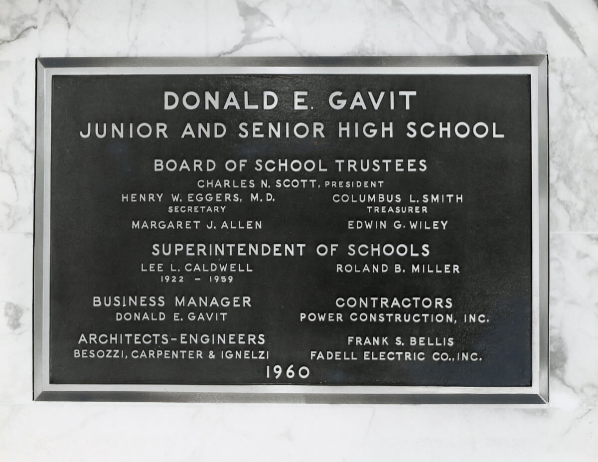 Gavit High School was named after Donald E. Gavit, business manager of the Hammond public schools. As a young man Gavit began a banking career with three years of college and no financial experience. With the financial collapse of the Great Depression, he chose a different career path. He returned to school and completed his teaching degree. “This led to a job as teacher of English at Hammond High School. Two years later, his banking background put him in the newly created business manager’s office. Gavit’s ability at handling the financial affairs of the multimillion-dollar school corporation resulted in the community naming a high school after him.”