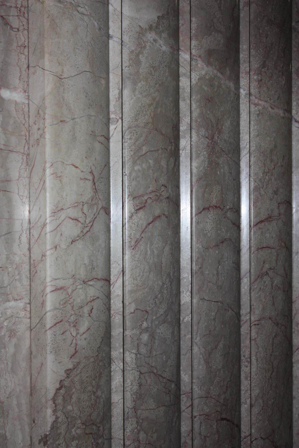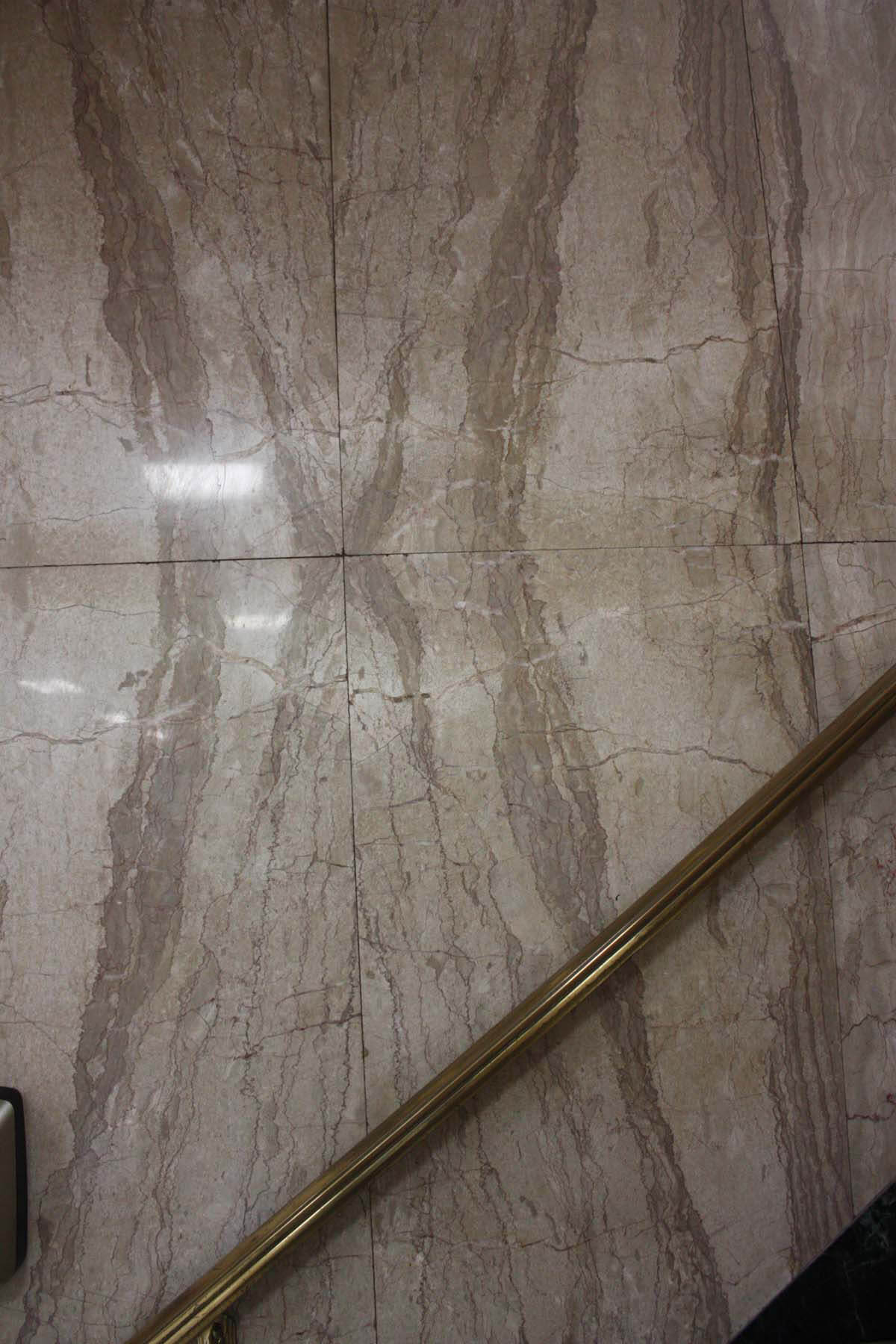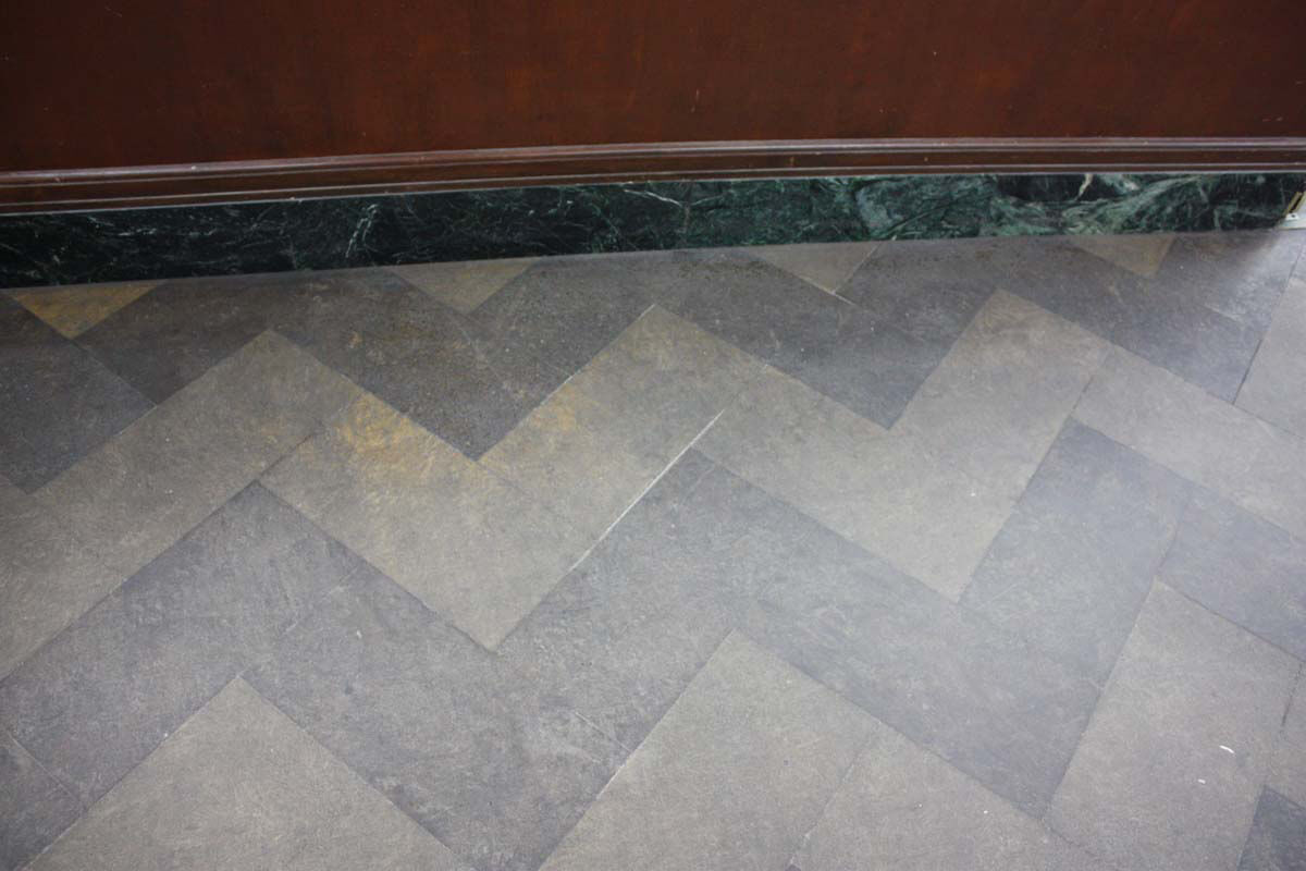 In addition to Iannelli’s bronze works City Hall’s common area walls are lined with marble wall panels that is booked to better display it’s the veins and grain. The flooring on the first three floors are polished granite measuring 10 x 20 and used in various patterns around the building and the base boards are dark green polished granite. Terrazzo tiles were used for the flooring on the stairs and ground floor.