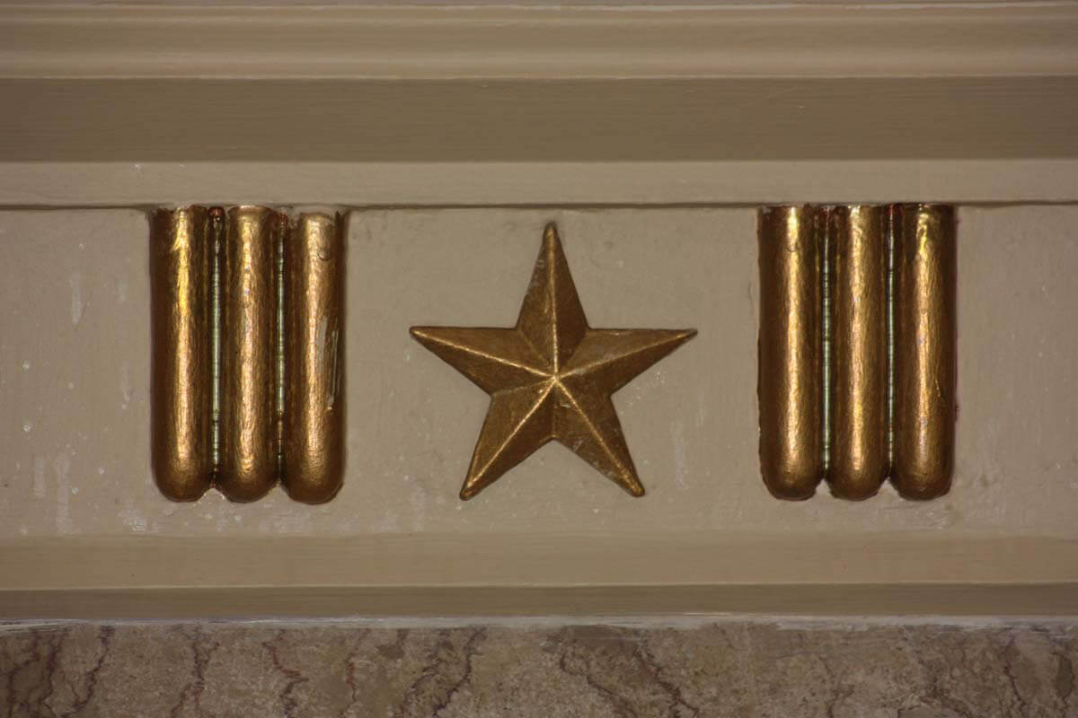 Iannelli’s work is still displayed at City Hall in bas-relief wall sculptures, brass works over doorways, side vents, elevator doors and even door knob back plates. No detail was too small to be overlooked. These details are representative of the Art Deco period.