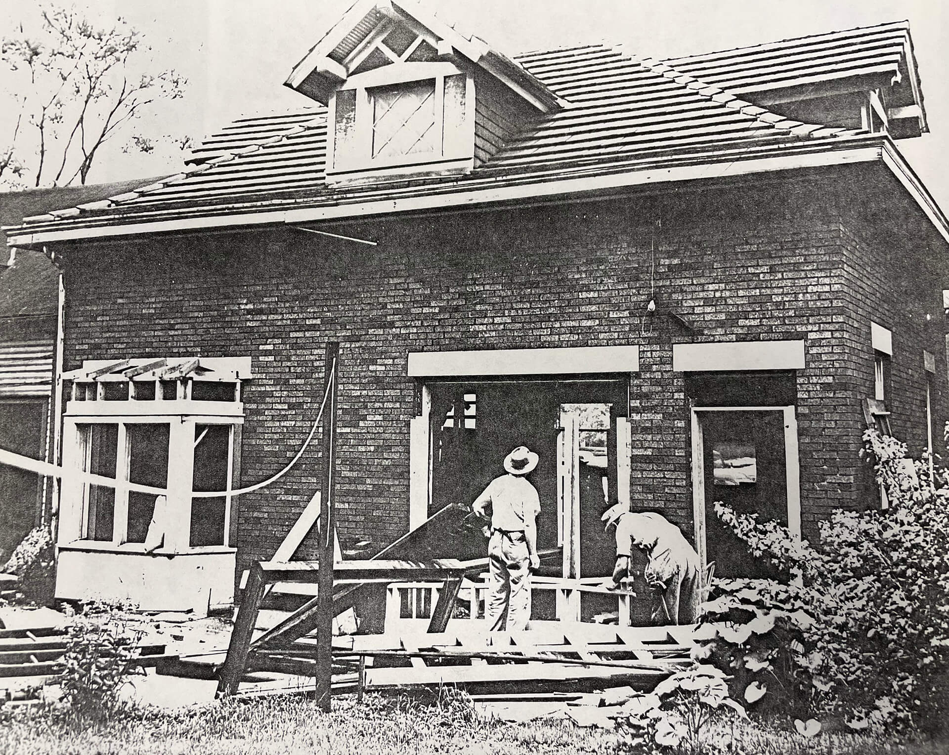 The Towle House was the home of Marcus M. Towle, the founder and first mayor of the City of Hammond. This house was built in 1885 and originally designed in the Queen Anne style with an onion dome roof on the side turret and typical Queen Anne characteristics such as dark trim work on all the windows and a wraparound wooden front porch. One of Hammond’s finest homes was designed for Towle’s large family. In addition to the house, it also featured a stable and carriage house in the rear.